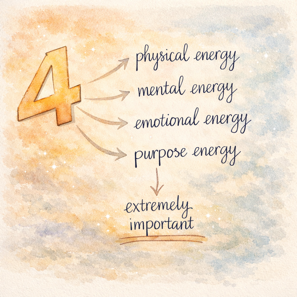 I once read in a management book about energy that there are four types of energy that we need to focus on: physical energy, mental energy, emotional energy, and purpose. Having a purpose in life is extremely important.
